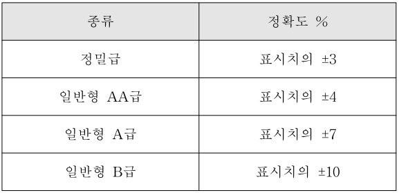 < 표3. 정확도에 따른 조도계 등급분류 >