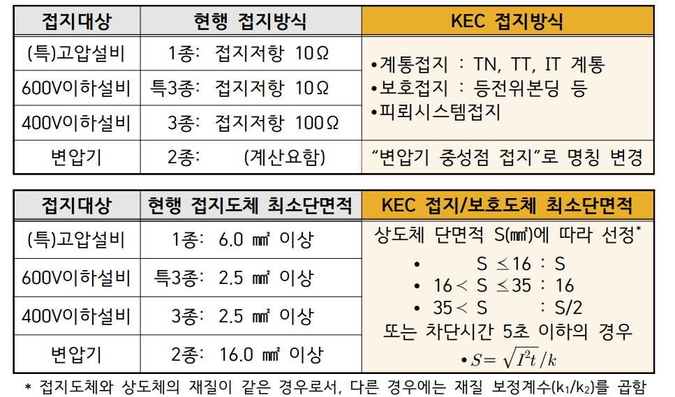 ㅇ 접지대상에 따라 일괄 적용한 종별접지(1종,2종,3종,특3종) 폐지(21' 시행)