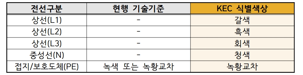 □ 전선식별법 국제표준화(KEC 121.2)