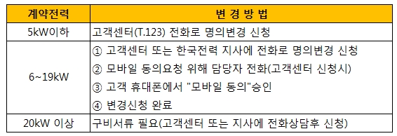 1) 전기사용자가 변경된 경우, 14일이내 명의를 변경하셔야 합니다.
