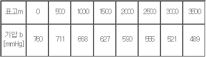 - δ : 상대공기밀도 기압을 b(mmhg), 기온을 t℃라 하면