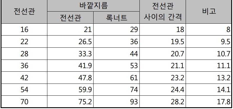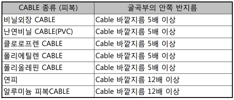 (1) 전선의 굴곡 반지름으로 구하는 경우