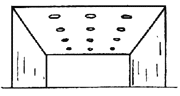 ⊙ 천장면에 작은 구멍을 많이 뚫어 그 속에 여러 형태의 광원을 배치하여 빛을 아래로 투사하는 방식. (하면 개방형, 하