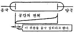 음극에 관 전압을 걸면 전자가 튀어 나오는 것.