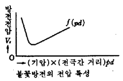 · 평등전계 중의 방전개시전압은 방전관 내부 기체의 압력과 전극간격에 비례한다.