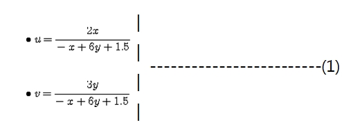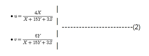 CIE-UCS 색도좌표 u,v로의 변환은 다음식에 따라 소수점 이하 4자리까지 계산한다.