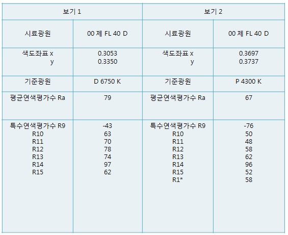 색온도 5300。K 이하의 백색 형광램프의 경우 : 완전방사체