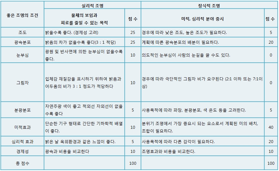 2. 좋은 조명의 조건
