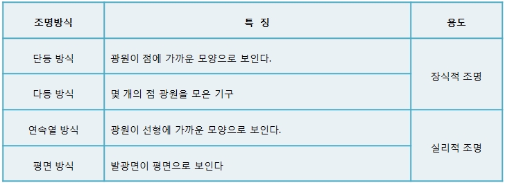 - 코너조명, 코니스 조명, 밸런스조명, 인공창조명 등