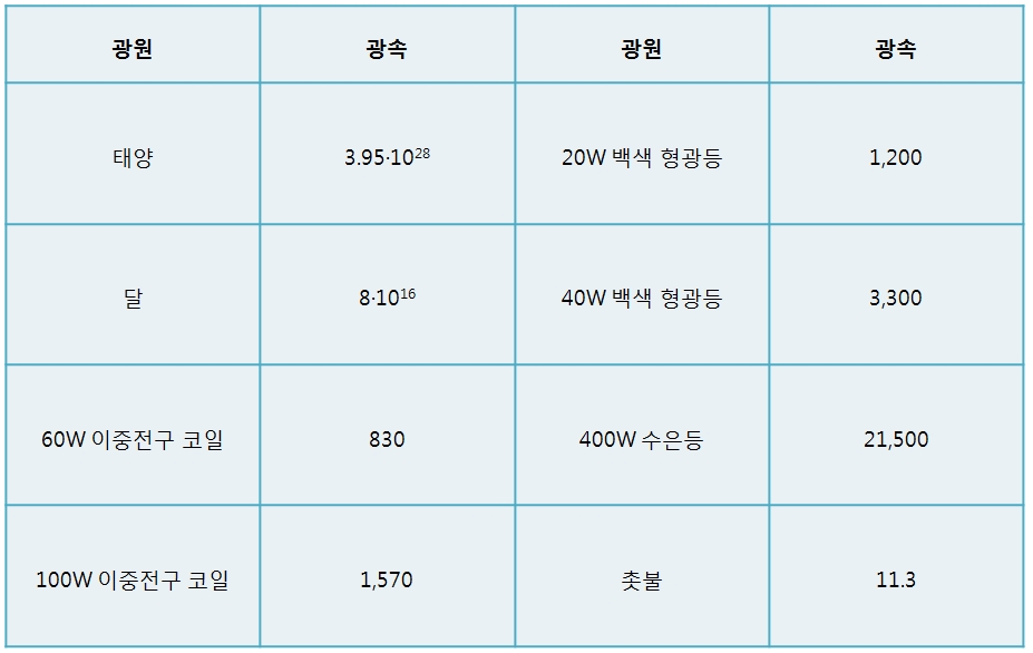 · 점 광원으로부터 모든 방향으로 균등하게 광속이 발산될 때의 광도