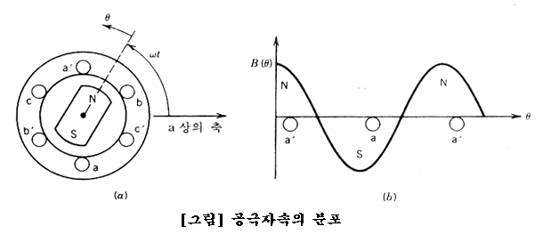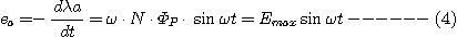 그러므로 aa'의 상코일에서 유기되는 기전력은 파라데이의 법칙에 의해 다음과 같이 얻을 수 있다.