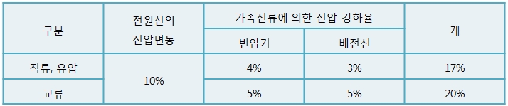 승강기 전원용량 산정시에는 부등율, 가속전류에 의한 전압강하를 고려하여야 한다.