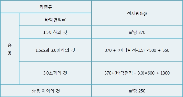 1-1) 적재하중과 바닥면적과의 관계