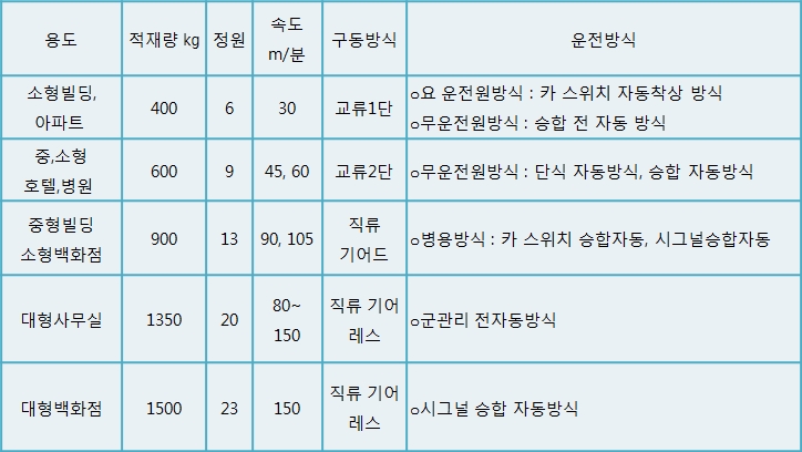 3) 엘리베이터의 선정