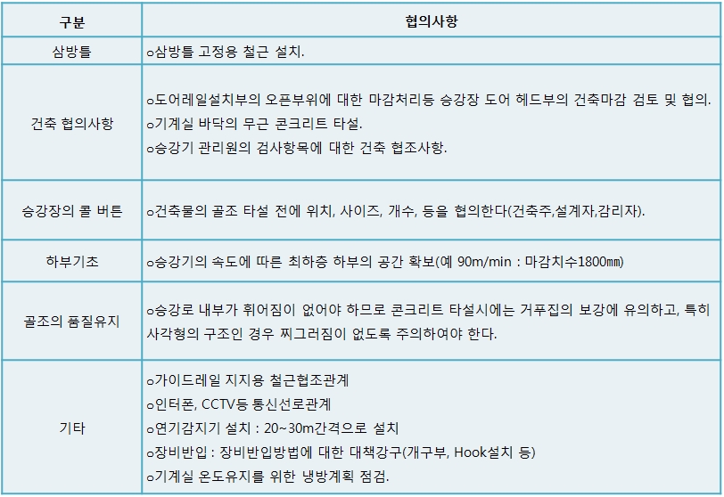 - 지진시에 로프나 케이블이 승강로 내의 돌출물에 걸리지 않도록 조치하여야 한다.