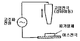 - 사용주파수는 수㎒ 이상으로 수증기 배기용의 구멍뚫기 전극이나 격자상 전극을 쓰며 건조의 진행에 따라 피열체 임피던스