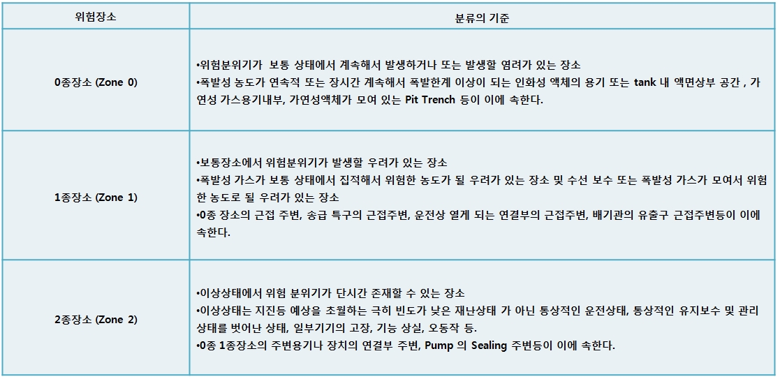 1-1) 가스증기 위험장소(방폭지역)의 구분