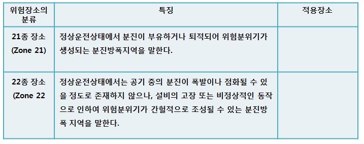 - 인화성 물질의 증기 또는 가연성 가스가 쉽게 존재할 가능성이 있는 지역