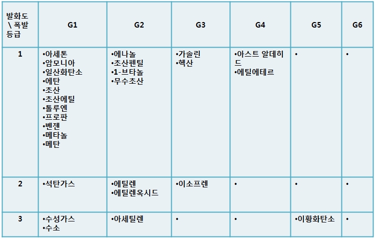 폭발성 가스는 방폭기기의 설계,제작 및 선정을 적정하게 하기 위하여 그 위험도에 따라 폭발등급 및 발화도를 정한다.