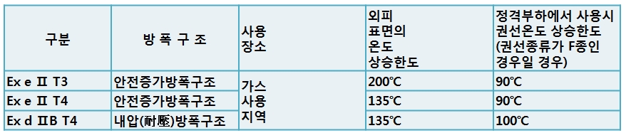 2. 방폭전기기기는 그 최고표면온도에 따라 T1∼T6로 분류한다.