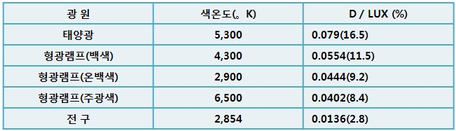 [표] 광원에 의한 광화학 손상도