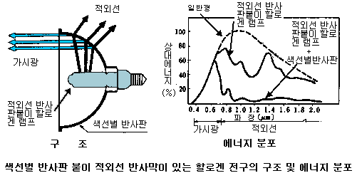 반사형 전구 및 할로겐 전구를 사용한다.