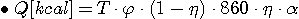 - T : 변압기용량 ψ : 변압기역율 η : 변압기효율 α : 변압기 부하수용율