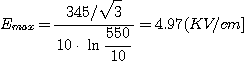 · Emax : 모선 표면의 최대 전위경간(KV/cm)
