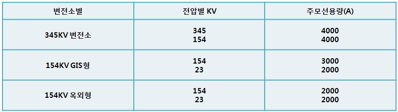 - 모선연락 : 송전선 인출입선에서 결정한 도체중 최대의 것으로 선택