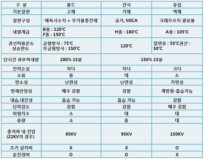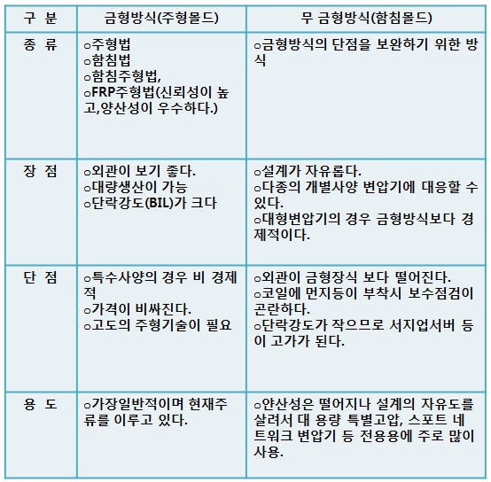 [표] 몰드 절연방식의 종류