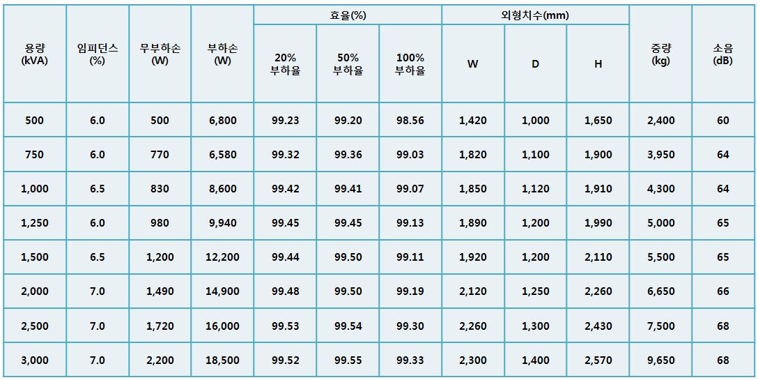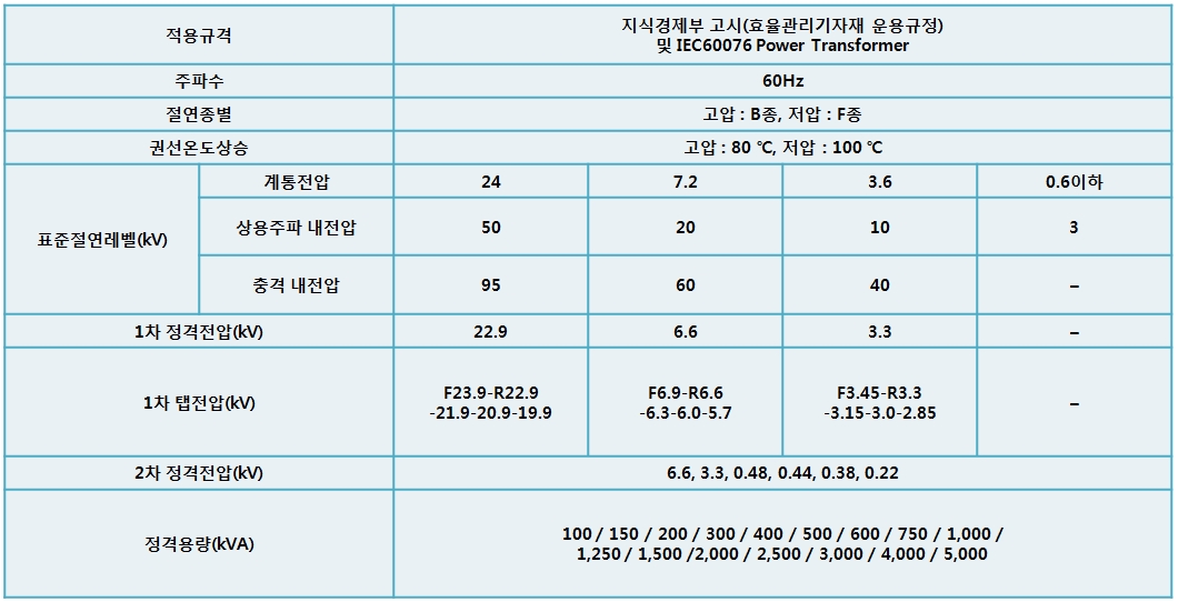 1) 아몰퍼스 몰드변압기의 사양