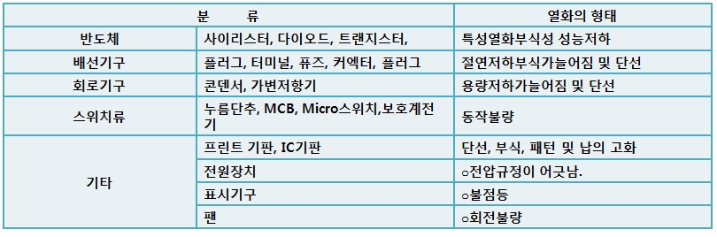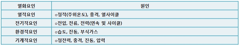 - 외적원인 : 열적,기계적, 전기적,환경적 결함