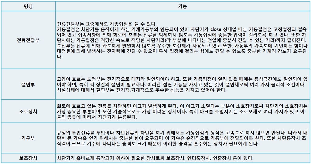 차단기는 그 기능을 생각해 볼 때 다음의 5가지 주요부분으로 구성되어 있다.