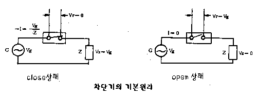 전원의 역할은 부하장치에 전기에너지를 공급함에 있고 이 전기에너지는 부하장치로부터 다른 에너지로 변환시킨다. 차단기의 성능은 전기회로를 개폐하는 것으로 전력을 전원으로부터 부하장치에 전달하기도 하고 저지하기도 하여 임의로 선택할 수 있다. 이상으로부터 차단기에는 2가지의 동작상태가 있는 것을 알 수 있다. 즉, close 상태에서는 공급전압과 회로 전 임피던스로부터 정해지는 전류가 차단기를 통하여 흐르고 open 상태에서는 전류는 "0" 이지만 전원전압이 그대로 양 전극간에 나타나게 된다.