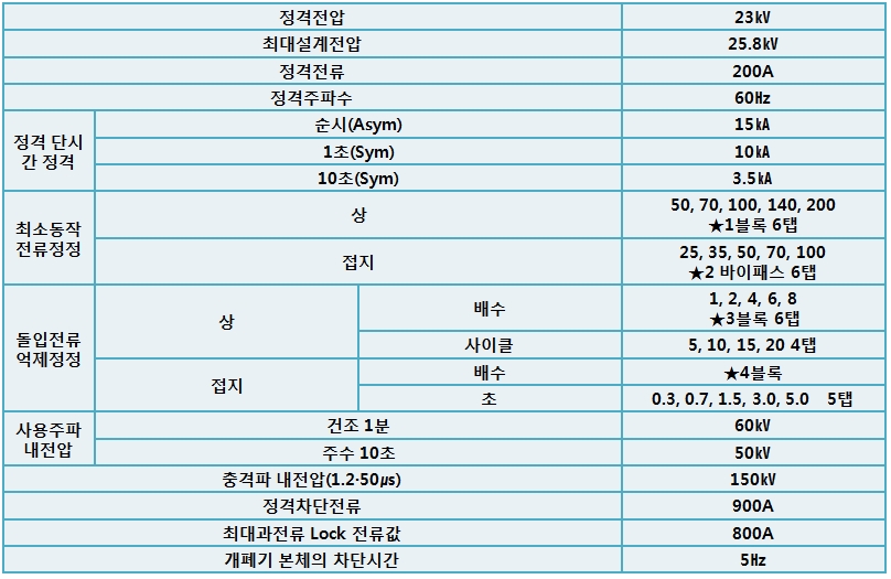 고장전류 800A 이상의 사고 발생시 일반 전기사업자의 변전소에 설치된 차단기가 트립되고 18~30㎐후 자동으로 재투입 된다.