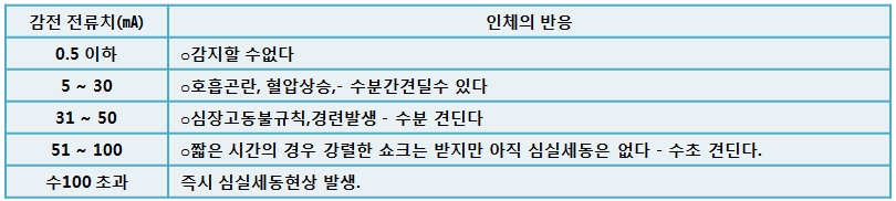 4. 감전에 따른 생리현상 및 전류비례