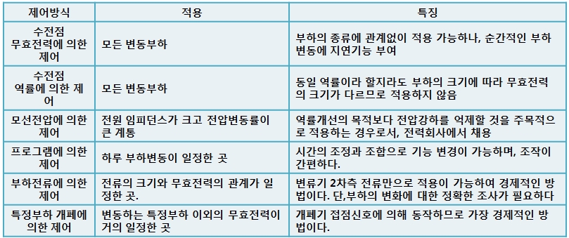 · 수전단에 설치하는 자동제어 방식으로 투입, 제거가 빈번한 경우에는 제5고조파에 대한 대책을 강구하여야 한다.