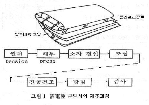 콘덴서는 적당한 두께(0.0006~0.030mm)의 폴리프로필렌 필름과 콘덴서 절연지와 알루미늄호일(두께 0.007~0.060mm)을 번갈아 겹쳐 감아올린 것을 소자로 하여 이 소자를 수십개의 직병렬로 접속한 후 용기에 넣어 진공 건조 후 절연유(천연광유, 방향족 탄화수소계)를 함침한 것이다.