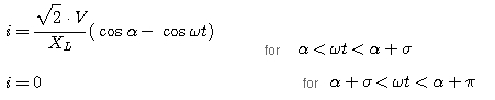 이고, I1과 V는 실효치이며 XL은 기본주파수에서 리액터의 리액턴스이다. 점호각 α를 증가시키는 것, 즉, σ를 감소시키는 것은 기본요소 I1를 감소시키는 것이다. 이는 리액터의 효과적인 리액턴스를 증가시키는 것과 동일하다,