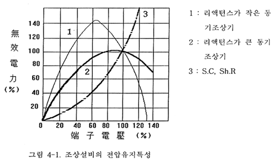 분로리액터도 전력콘덴서와 마찬가지로 전력계통의 전압강하의 제곱에 비례해서 출력이 감소하므로 전력계통 고장시에 전압변화를 저지하지 못한다.