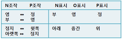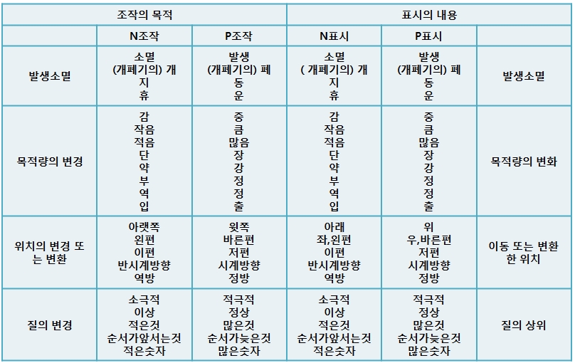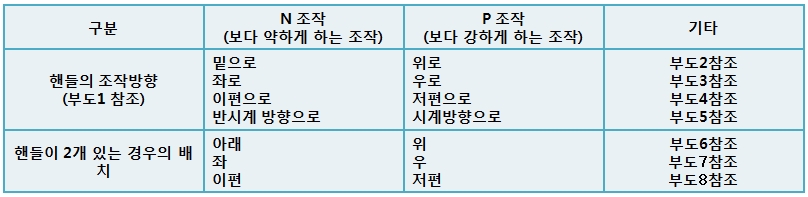 핸들의 조작과 그 목적과의 관계는 N 조작은 소극적방향, 즉 N표시의 내용 방향으로, P조작은 적극적방향, 즉 P표시의 내용방향으로 진행하는 것을 목적으로 한다(표3참조)
