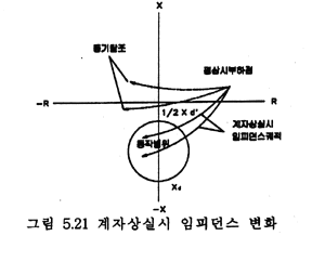 · 계자상실시 발전기단에서 본 임피던스궤적이 계자상실 보호계전기의 동작 범위내로 이동하면 한시요소를 동작시켜 일정시간 지연 후 발전기를 정지시킨다. 여기서의 한시요소는 계통의 과도현상에 의한 오동작을 방지하기 위함이다.