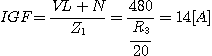 가 된다. 이 값은 사고 아크 임피던스와 접지회로 임피던스가 20Ω에 비하여 무시될 수 있기 때문에 사실이다.
