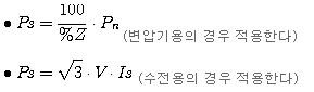 기준용량과 변압기용량이 다른 경우에는 다음식에 따라 기준용량 Base로 역산한다.