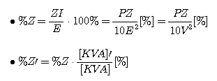 임피던스 Z[]이 접속되고 E[V]의 정격 전압이 인가되어 있는 회로에 정격전류 I[A]가 흐르면 ZI[V]의 전압강하가 생긴다. 이전압강하분 ZI[V]가 회로의 정격전압 E[V]에 대해서 몇[%]에 해당되는가 하는 관점에서 E[V]에 대한 ZI[V]의 비를 %로 나타낸 것이 %임피던스인 것이며, 여기서는 이것을 %Z로 나타낸다. 즉