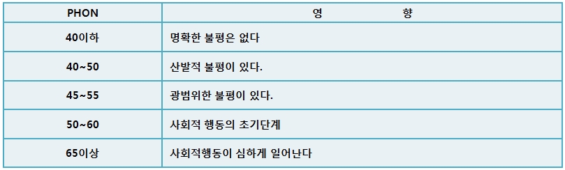 · 폰(Phon) : 음의 크기를 감각적 기준으로 나타낸 것. (국내의 소음기준 40폰 이하)