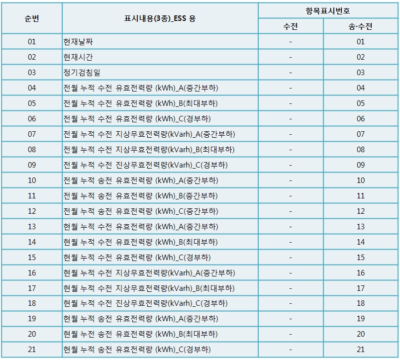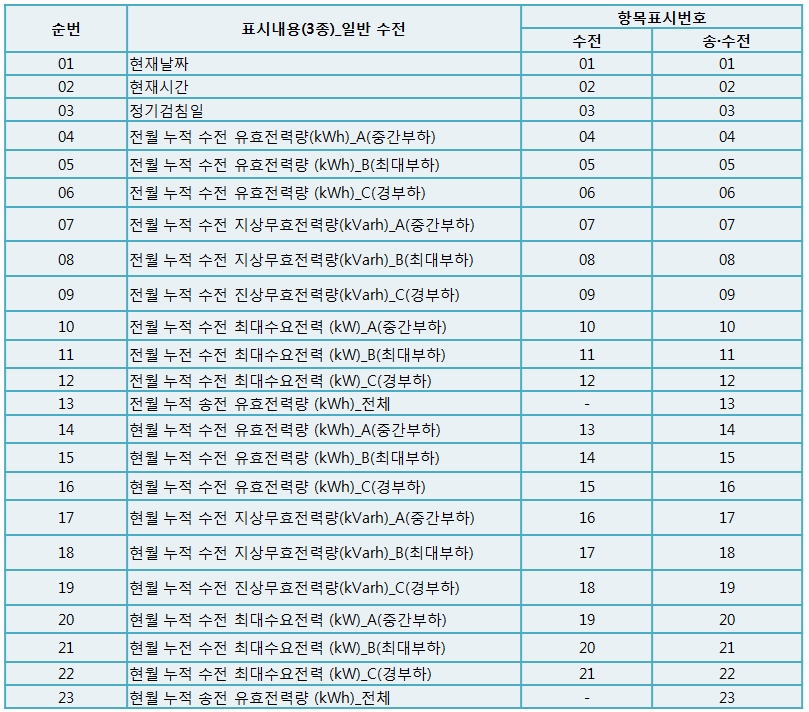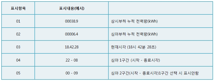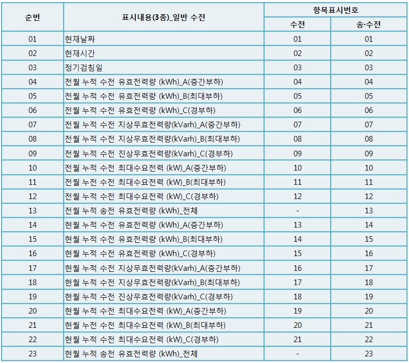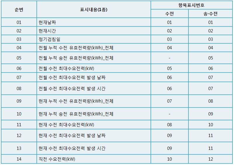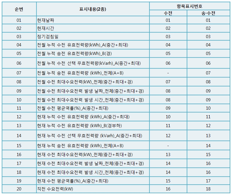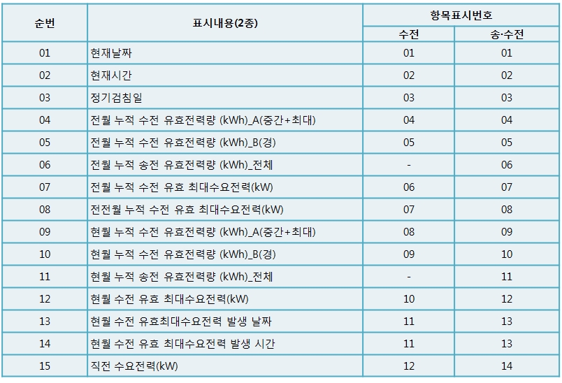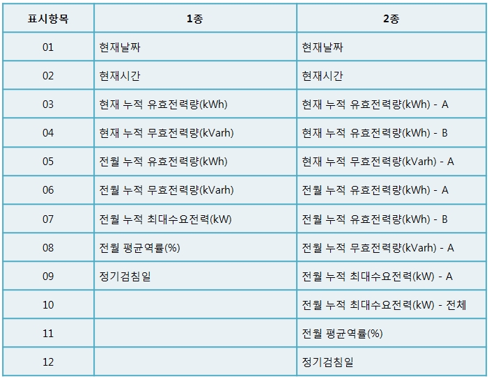 ※ 2종 3번~9번 표시항목 중 A, B는 계량시간대 구분 표시