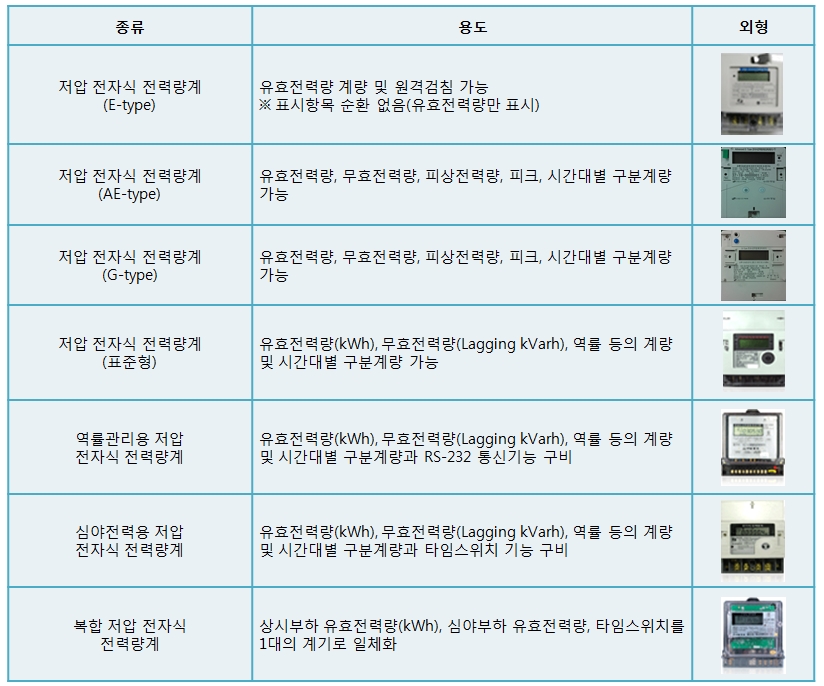 2-3) 저압 전자식 전력량계(표준형), 역률관리용 저압 전자식 전력량계, 심야전력용 저압 전자식