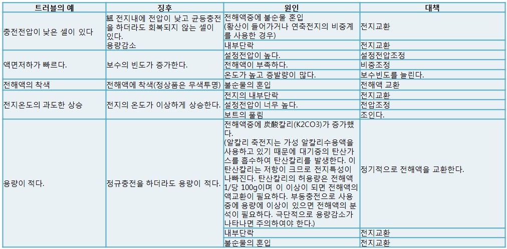 2. 알칼리 축전지의 트러블 및 대책