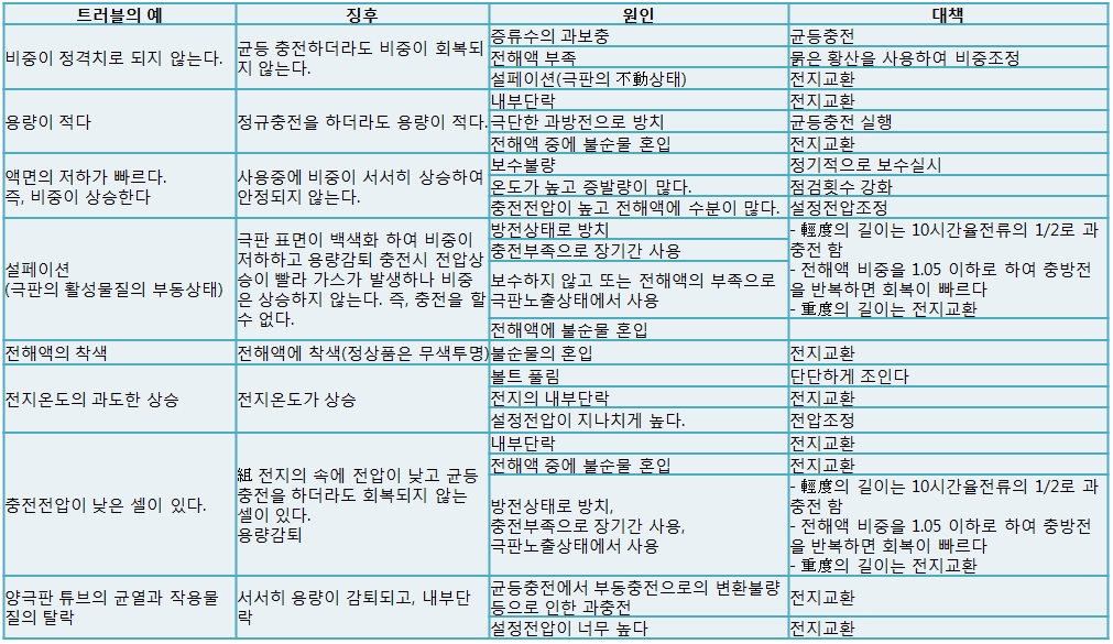1. 연축전지의 트러블 및 대책